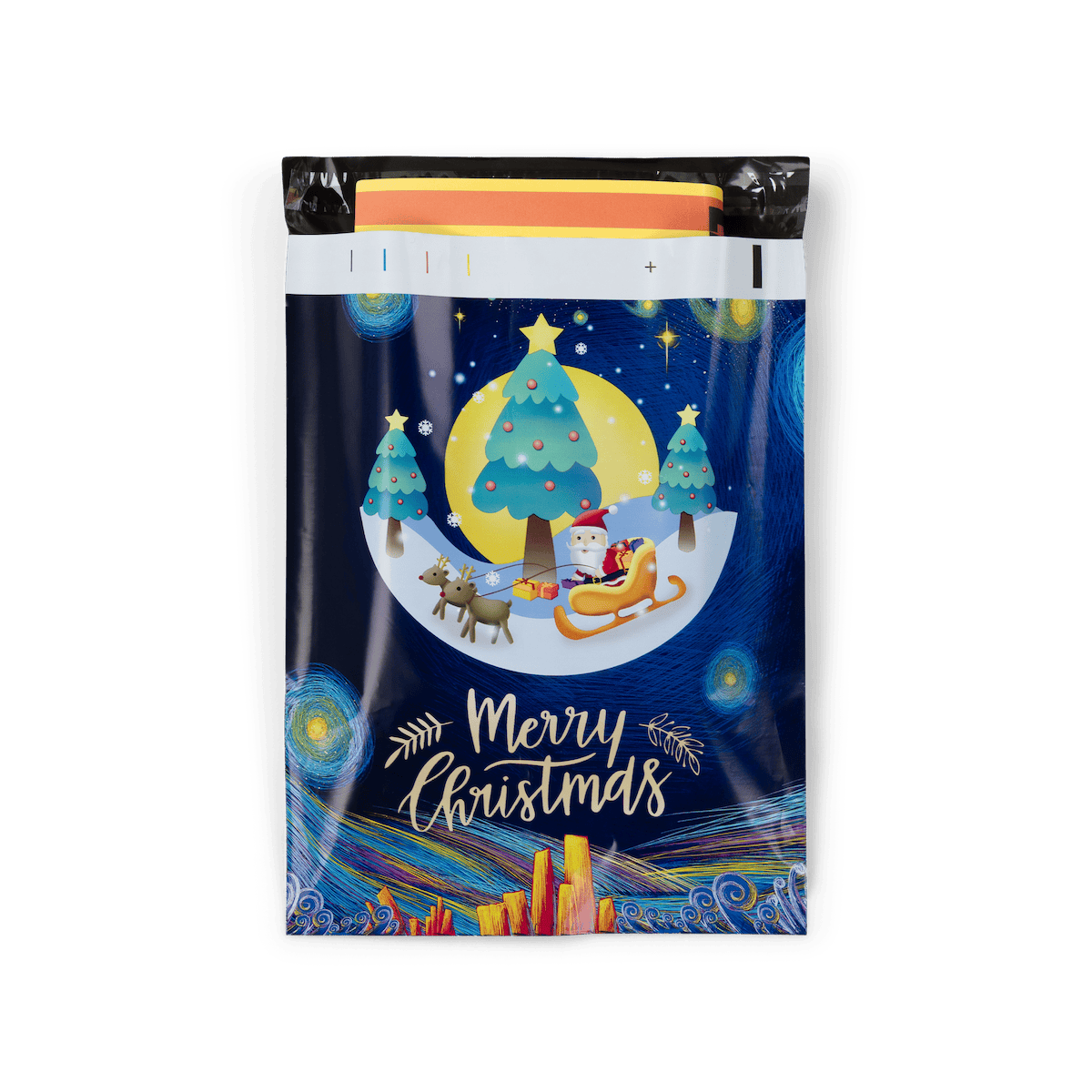 Easy to use self-sealing gift wrapping sleeves with a classic reindeer sleigh and Father Christmas design.
